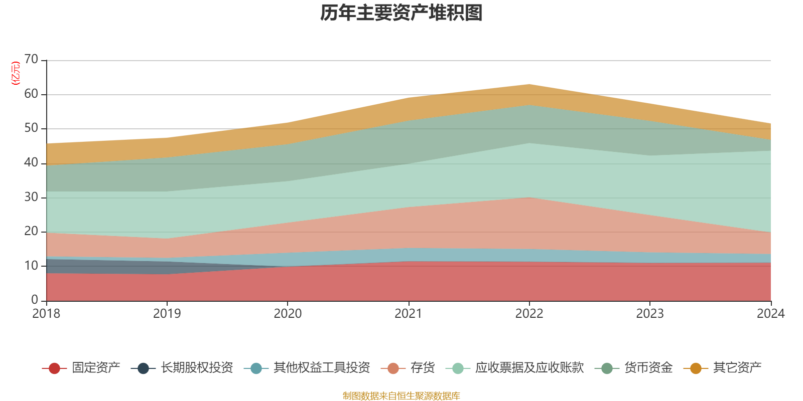 资产重大变化方面,截至2024年末,公司应收票据及应收账款较上年末增加37.48%,占公司总资产比重上升15.97个百分点;货币资金较上年末减少68.6%,占公司总资产比重下降11.45个百分点;存货较上年末减少42.31%,占公司总资产比重下降6.76个百分点;固定资产较上年末增加0.67%,占公司总资产比重上升2.3个百分点。