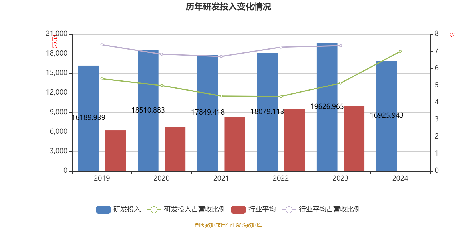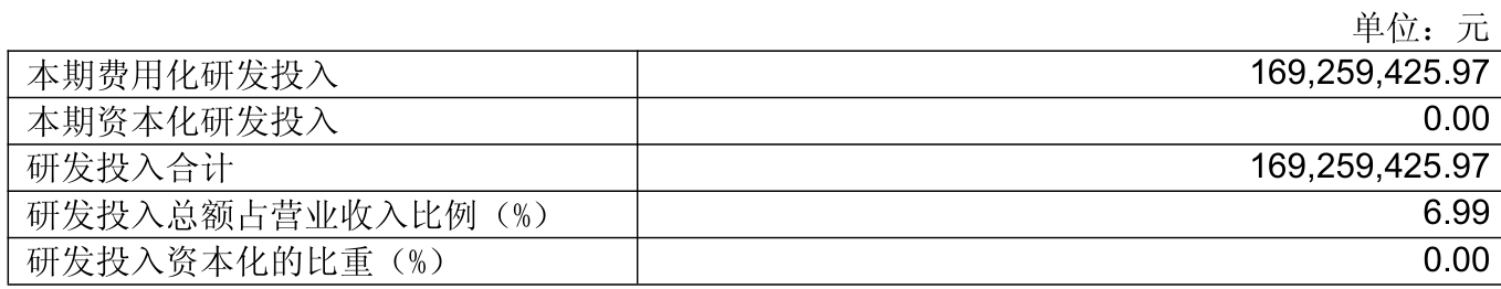 2024年全年,公司研发投入金额为1.69亿元,同比下降13.76%;研发投入占营业收入比例为6.99%,相比上年同期上升1.85个百分点。此外,公司全年研发投入资本化率为0%。