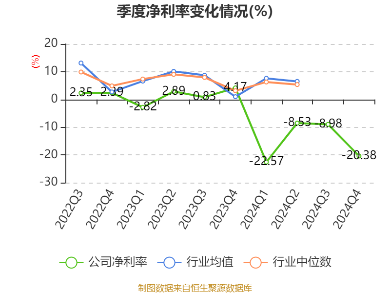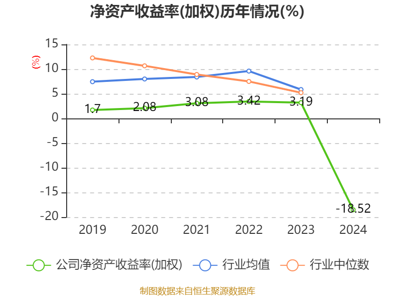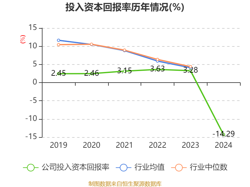 数据显示,2024年公司加权平均净资产收益率为-18.52%,较上年同期下降21.71个百分点。公司2024年投入资本回报率为-14.29%,较上年同期下降17.57个百分点。